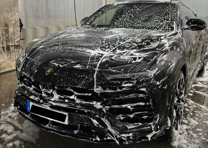 Efter att bilen noggrant sköljts från alla rengöringsmedel går vi vidare till nästa steg i processen. Med hjälp av en tvätthandske applicerar vi ett schampo, vilket inte bara ger en optimal avrinning utan även skapar en häpnadsväckande glans. Efter att bilen sköljts av avslutar vi med att torka av karossen, fälgarna och alla detaljer för att undvika kalkfläckar och säkerställa en felfri yta.